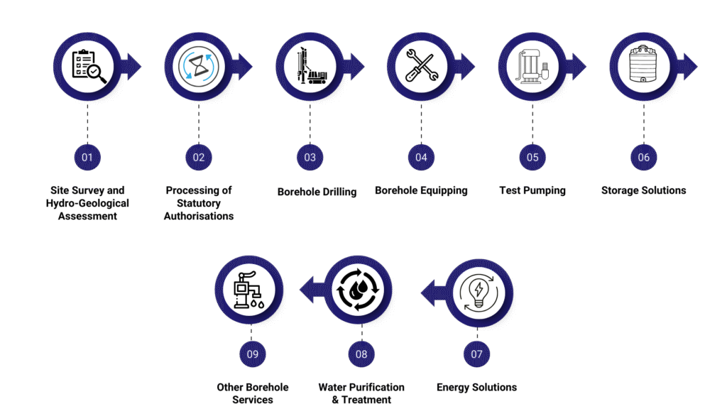The data gathered ensures that the borehole is fit for its intended use and provides a scientific basis for pump sizing, storage planning, and system design. All findings are compiled in a detailed report, often required for final regulatory approvals.